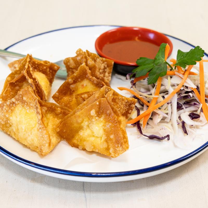 Fried crispy wontons filled with cream cheese and crab meat served with sweet and sour dipping sauce